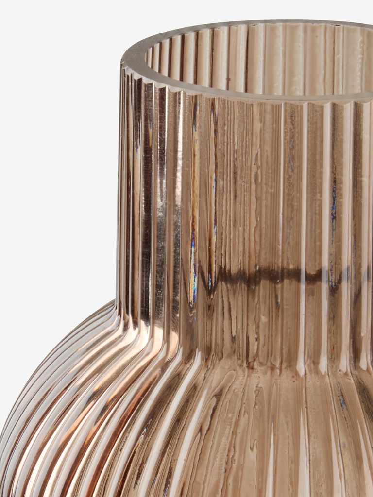 Ваза з коричневого скла з ребристим дизайном. Округла форма з вузькою шийкою ідеально підходить для кількох стебел або невеликого букета. Її також можна використовувати як самостійний декоративний елемент. Діам. 12 см, вис. 21 см