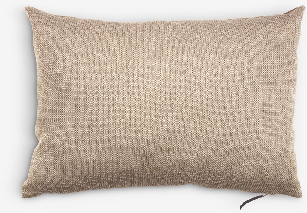 Good pillow, the back is made of a taupe velvet fabric.