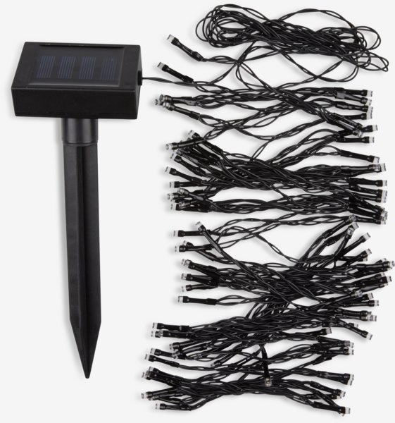 Ліхтарі на сонячній батареї зі 100 прозорими світлодіодними лампочками для створення теплої атмосфери у вашому саду чи на балконі. Ліхтарі працюють на сонячній енергії, заряджаються вдень і автоматично вмикаються в сутінках. Ви можете, наприклад, використовувати довгу гірлянду, щоб прикрасити паркани або кущі. Довж.1000 см