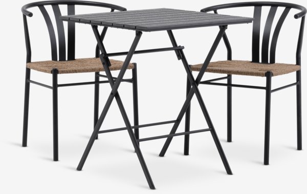 2-місний набір садових меблів. Столик: сталь та штучне дерево. Складаний. 65х65 см, вис. 70 см. Стільці: алюміній та петан
