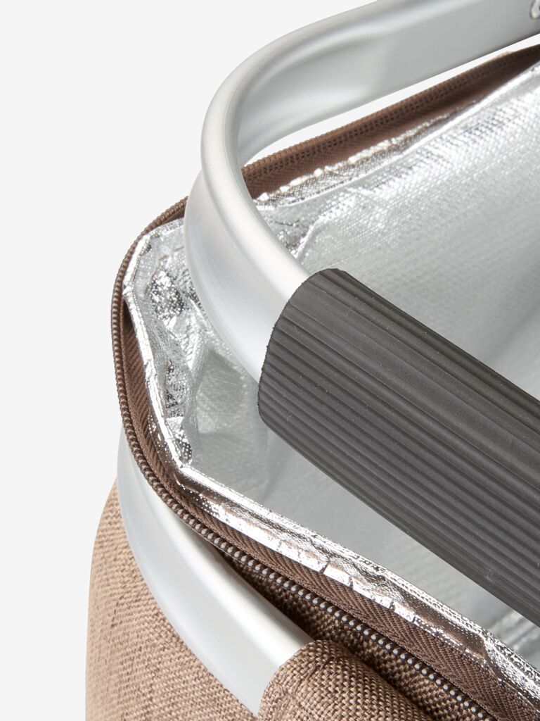 Термосумка об'ємом 25 літрів з міцною ручкою для легкого перенесення. Внутрішня частина з міцної алюмінієвої фольги, зовнішня - з поліестеру натурального кольору. Ця термосумка ідеально підходить для зберігання їжі та напоїв холодними під час пікніків або поїздок. 29x46x25 см