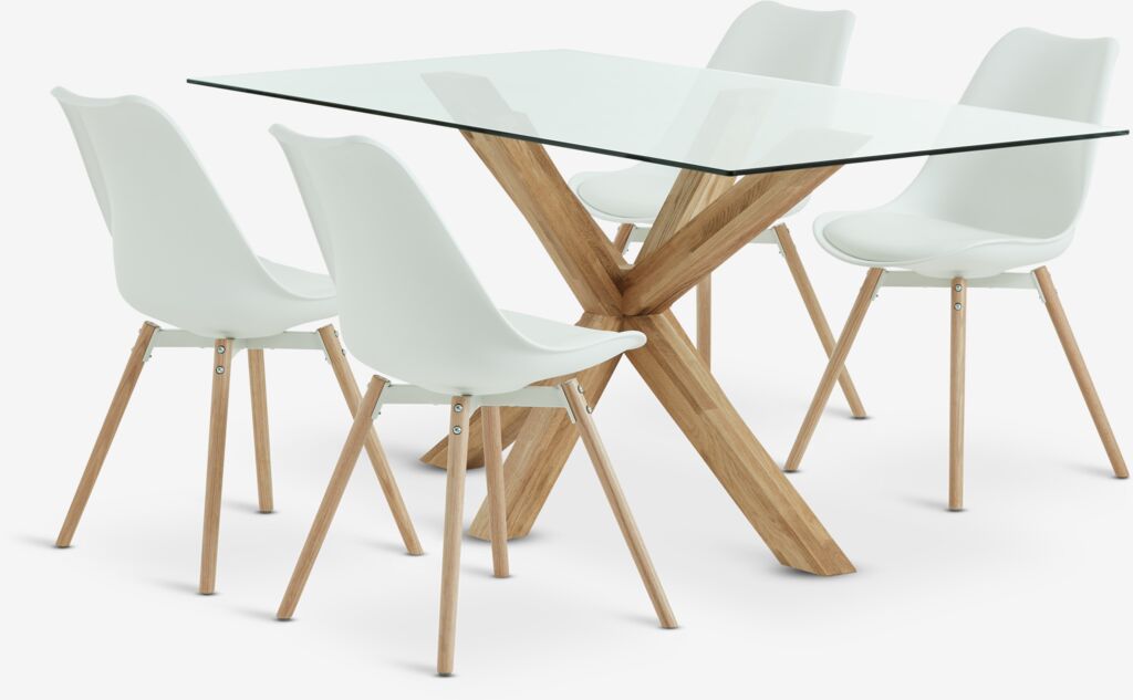 AGERBY + KASTRUPСтіл AGERBY д.160см нат.дуб + 4 Стільці KASTRUP білий