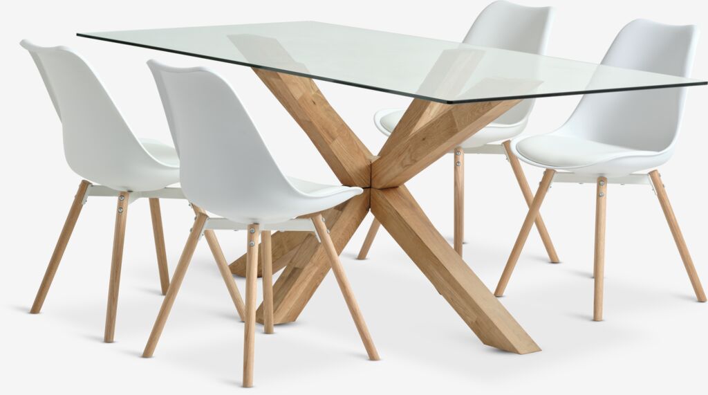 AGERBY + KASTRUPСтіл AGERBY д.190см нат.дуб + 4 Стільці KASTRUP білий