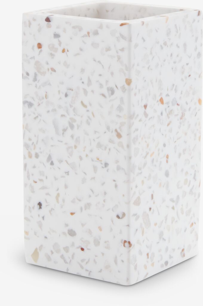 Купила в пару до дозатору для мила з цієї ж серії, і дуже задоволена. Стакан важкий і не ковзає по поверхні під час використання, дуже приємно оновлює вигляд ванною у парі з дозатором, і за рахунок фактури і окрасу на ньому не помітні якісь бризки води чи мила під час користування краном поряд. Однозначно рекомендую, ще й за дуже вигідну ціну!