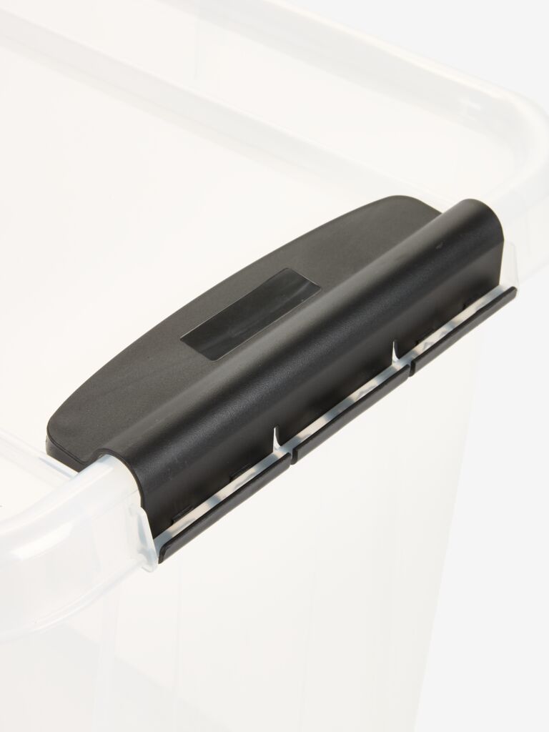 Короб для зберігання речей з кришкою із прозорого пластику, що дозволяє легко бачити його вміст. Короби можна складати один на один, тому ви можете максимально використовувати ваш простір для зберігання. Ребриста кришка забезпечує стійкість коробів під час їх складання. Практичні ручки-кліпси щільно закривають короб та є зручними під час його переміщення. Місткість 65 л. 40x60x43 см